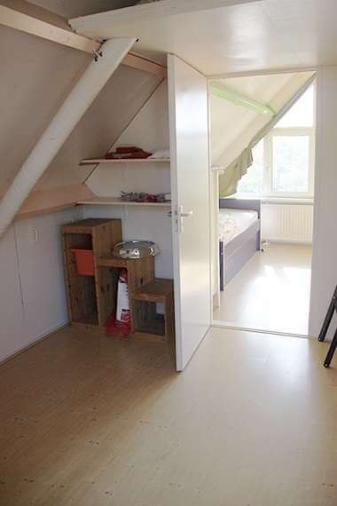 2e verdieping: via een vaste trap is de zeer lichte en zonnige zolder bereikbaar thans gedeeltelijk in gebruik als slaapkamer en inloop garderobe kamer. Desgewenst is de zolder zo in te delen dat hier 2 aparte slaapkamers te realiseren zijn.
