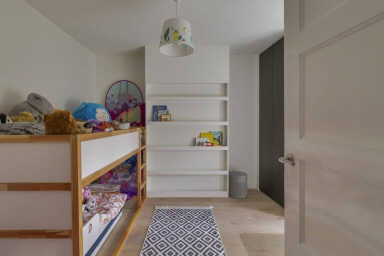 Vanuit de overloop gaan we naar de tweede verdieping. Hier heb je vanaf de overloop toegang tot drie slaapkamers en de badkamer. De badkamer is ingedeeld met een inloopdouche, wastafel en een toilet.