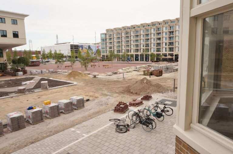 Het populaire Stadionplein met nieuw ontwikkelde winkels, restaurants en supermarkt ligt aan uw voeten.