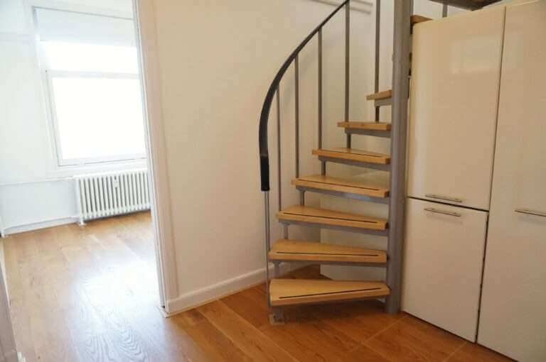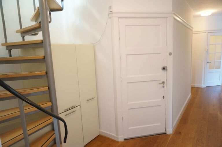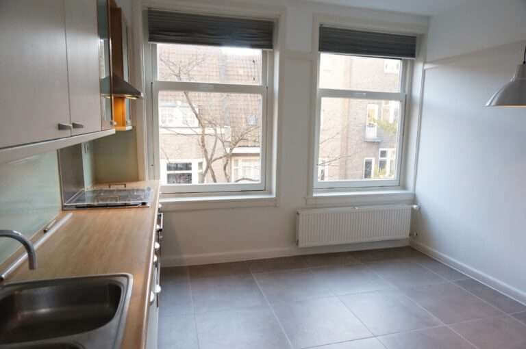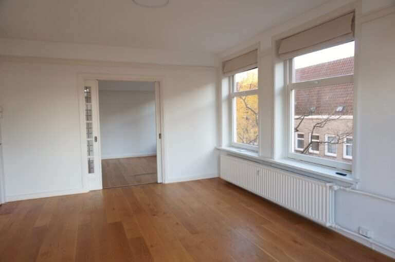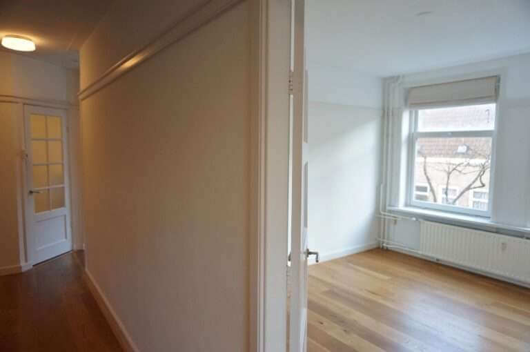 Het appartement is gelegen op de hoek van het gebouw, dit betekent veel ramen, een balkon en veel natuurlijke lichtinval. De woning is gelegen op de derde en deels vierde verdieping van een karakteristiek jaren ’30 pand aan het Stadionplein in Amsterdam Zuid.
