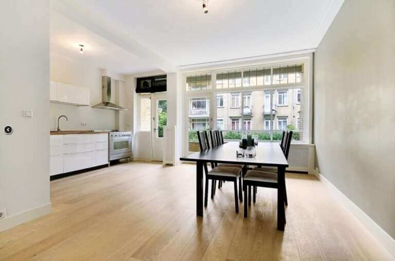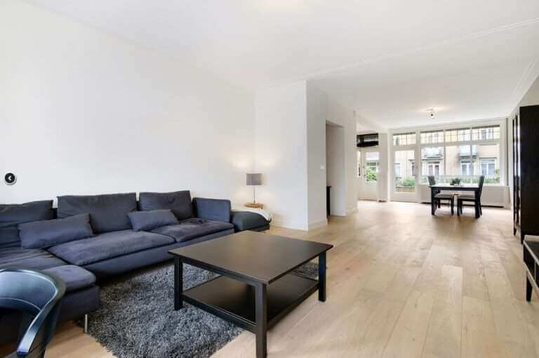 Zeer fraai gerenoveerd gestoffeerd appartement gelegen op de begane grond en in het souterrain van circa 170 m² met terras van ca. 11 m² en maar liefst 3 badkamers!