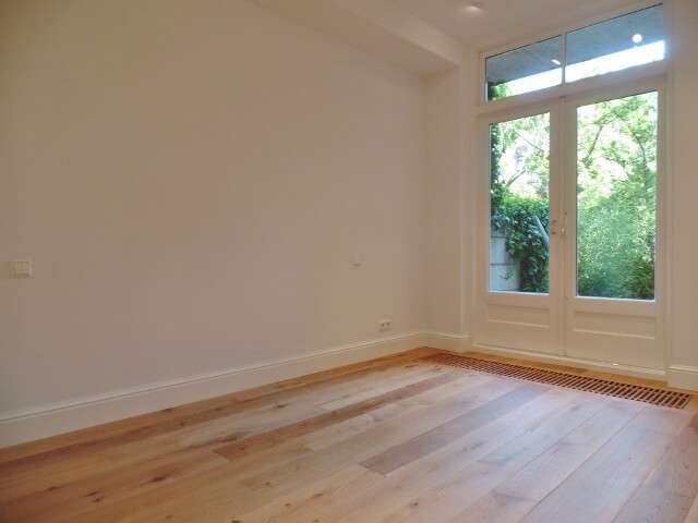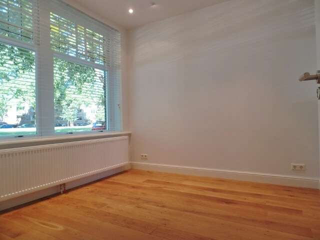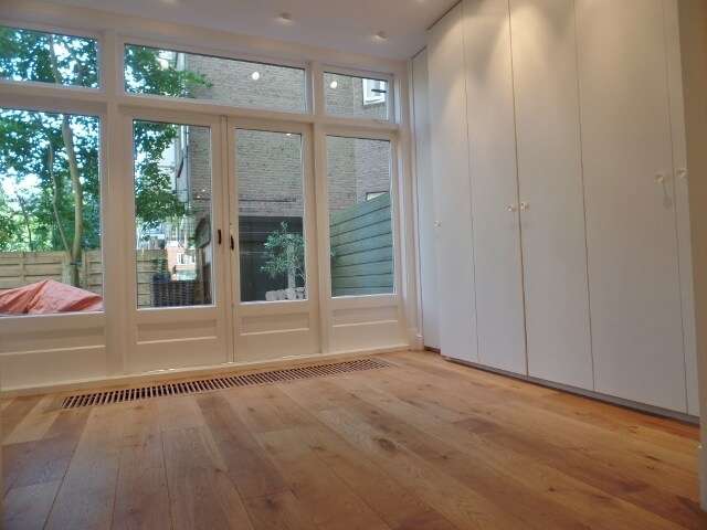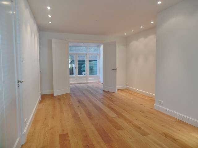 De woning beschikt over een mooie kamer en suite met voorkamer en achterkamer gescheiden door witte houten deuren. De achterkamer met openslaande deuren naar de achtertuin is goed te gebruiken als derde slaapkamer/ eetkamer of ruime studeerkamer. Voorts heeft het appartement twee goede bruikbare slaapkamers van gelijke grootte, een walk in closet, een forse badkamer met inloopdouche, dubbele wastafel, wasmachine en droger aansluiting en een half afgesloten keuken voorzien van diverse inbouwapparatuur. Aan de achterzijde is het genieten in de besloten tuin.