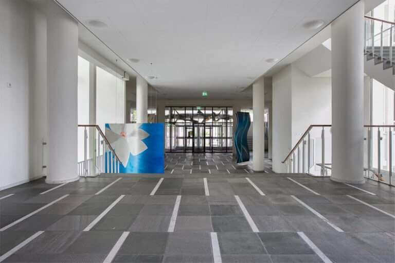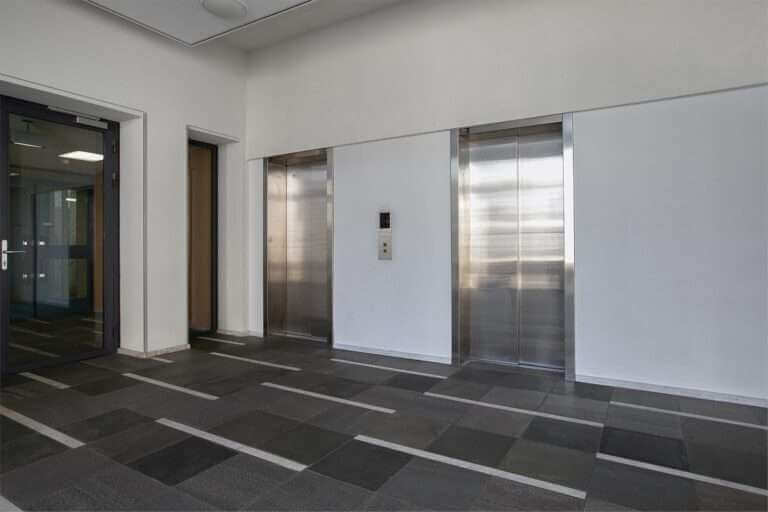 Via de hoofdentree met tourniquetdeuren en videofoon, de majestueuze centrale hal met trappenhuis en twee liften, naar de zesde verdieping…
