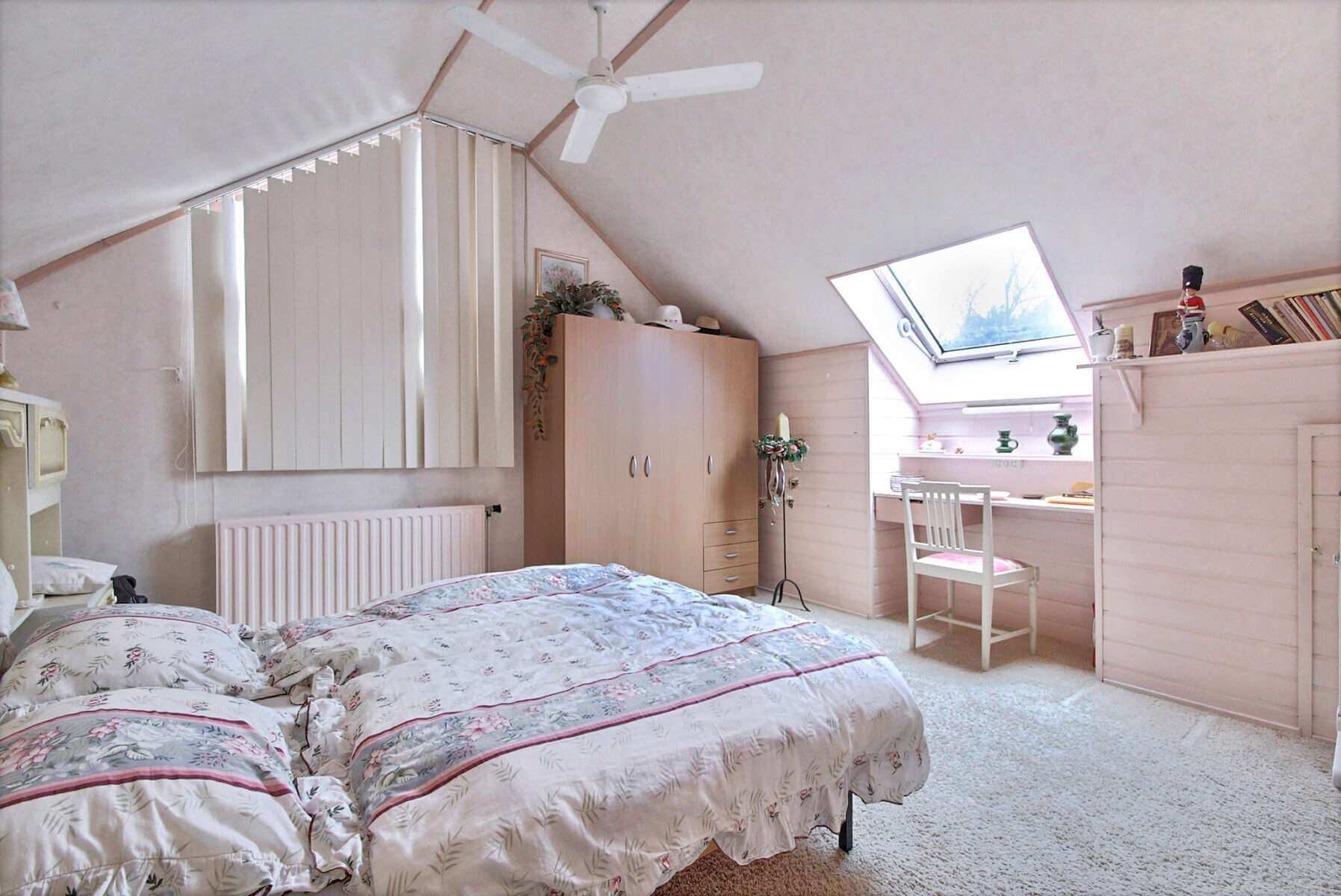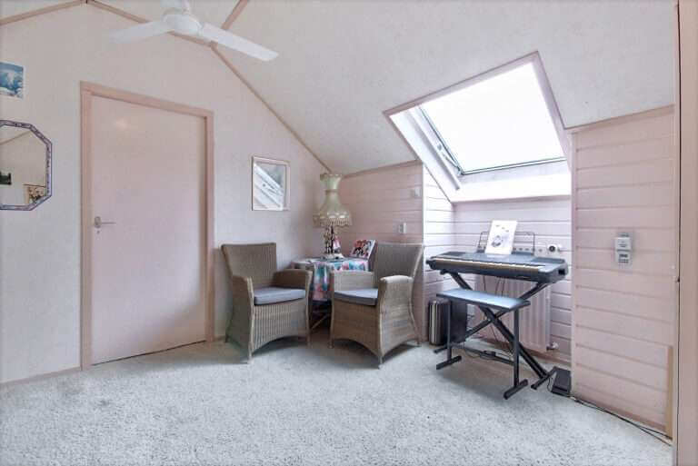 Ruime tweetal slaapkamers met mogelijkheid tot maken van extra slaapkamer. Tevens bevindt zich op de eerste verdieping de centrale verwarming ketel.
