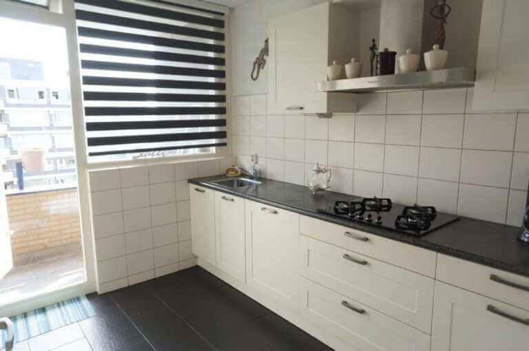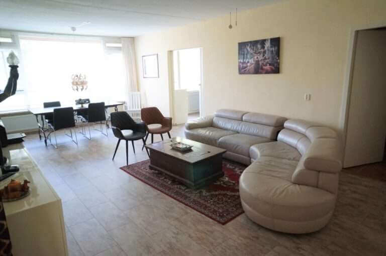 Ruime (110m2), gemeubileerde 5 kamer (4 slaapkamer) appartement met 2 balkons.