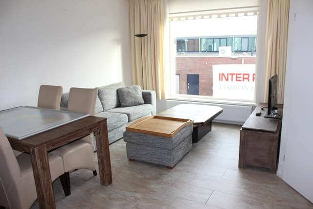 Het appartement wordt gemeubileerd verhuurd en is voorzien van een laminaat vloer. De slaapkamer heeft vloerbedekking en een vaste kast. Tevens heeft men vanuit de slaapkamer toegang tot de badkamer welke is voorzien van een douchehoek en wastafel met meubel. De woonkamer is vanuit de hal te bereiken en is een lichte ruimte voorzien van open keuken met inbouwapparatuur; te weten een combi-magnetron, koelkast met vriesvak, 4-pits gasfornuis en afzuigkap. Naast de woonkamer bevindt zich een werkkamer, die eventueel ook te gebruiken is als slaapkamer. Het appartement heeft aan de galerijzijde de beschikking over een heerlijk dakterras van circa 22m².