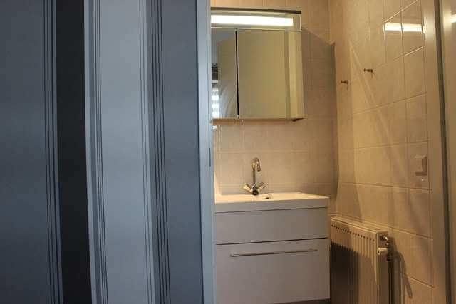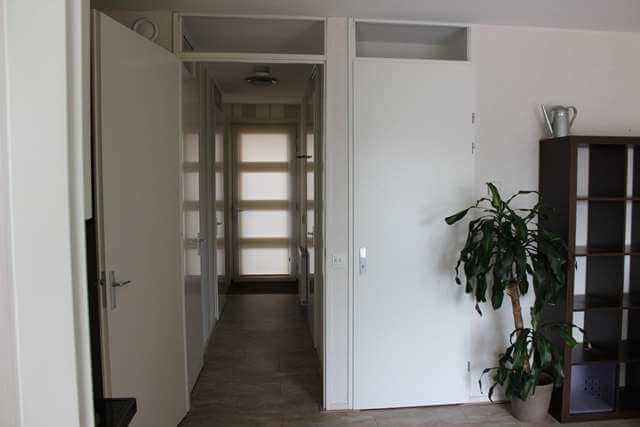 Bij de entree van het appartement heeft men toegang tot de diverse vertrekken te weten de meterkast, de toiletruimte welke is voorzien van een zwevend toilet met fonteintje, de bijkeuken voorzien van wasmachine, droger.