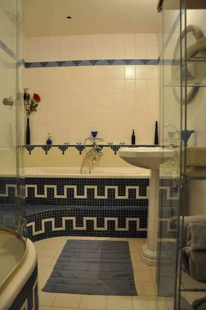 Op de eerste verdieping bevinden zich een master bedroom met balkon en aparte studeerruimte (met gelegenheid tot bijplaatsen 1 bed), de tweede slaapkamer, separate toilet en badkamer met bad en douche bevinden zich ook op deze verdieping.