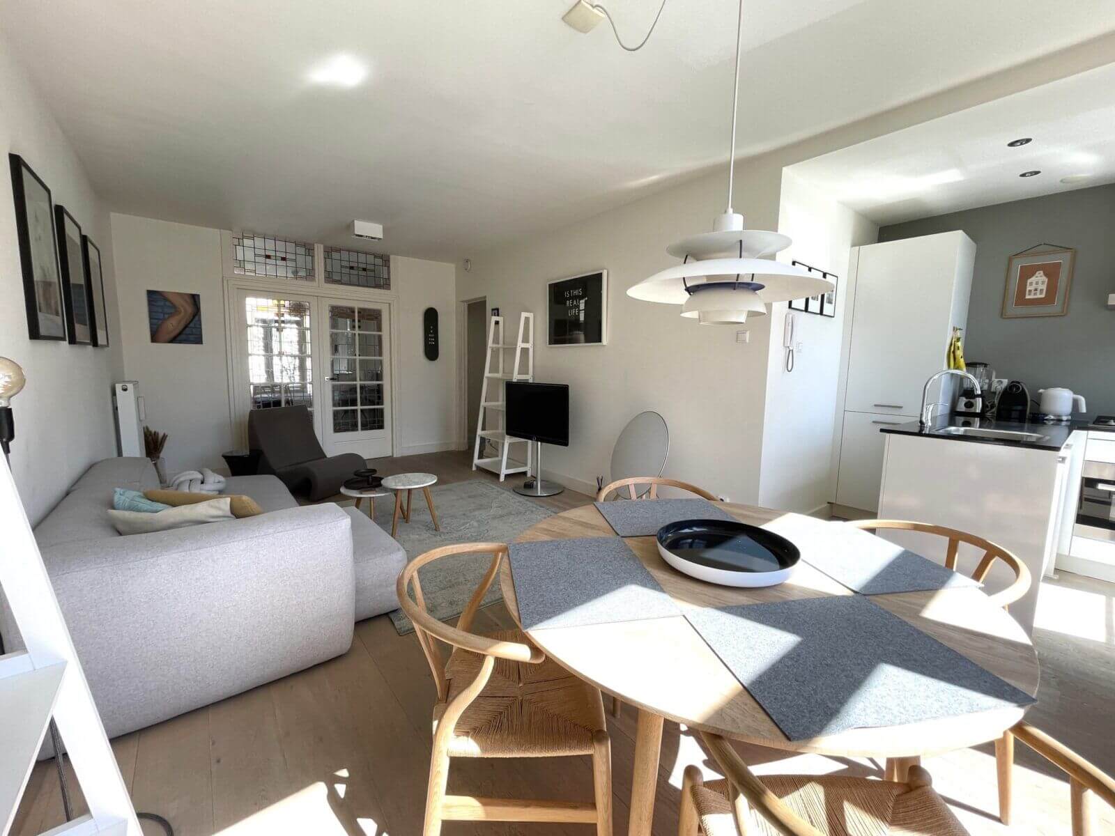 De woonkamer met open keuken biedt een prachtig uitzicht.