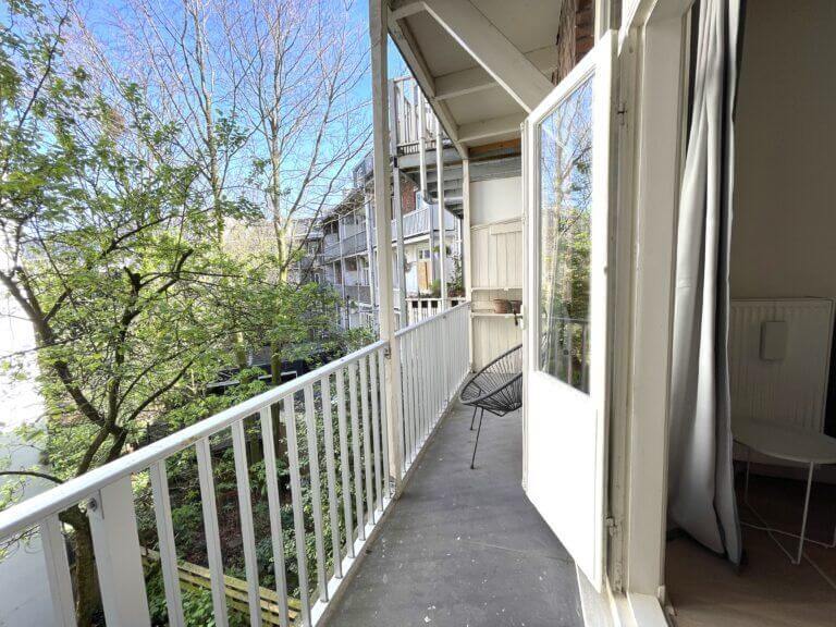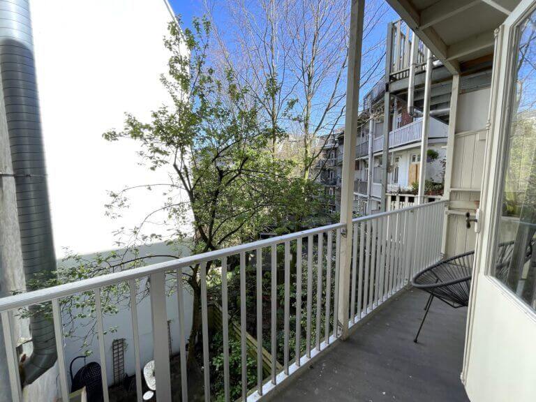 De twee slaapkamers zijn aan de rustige achterzijde van de woning gelegen, het balkon is op het Noord-Oosten gericht, een heerlijke plek om in alle rust van de ochtendzon te genieten of in de avond van de schaduw.
