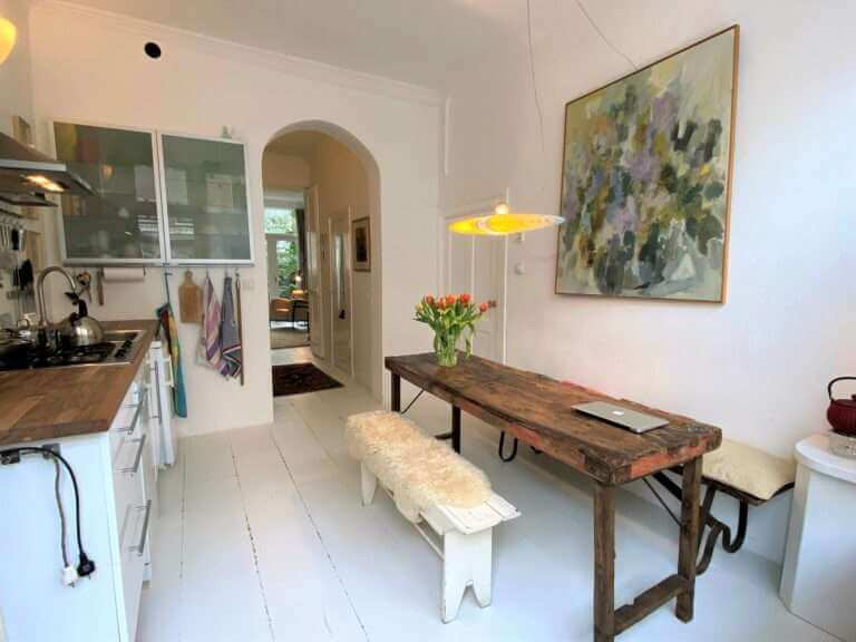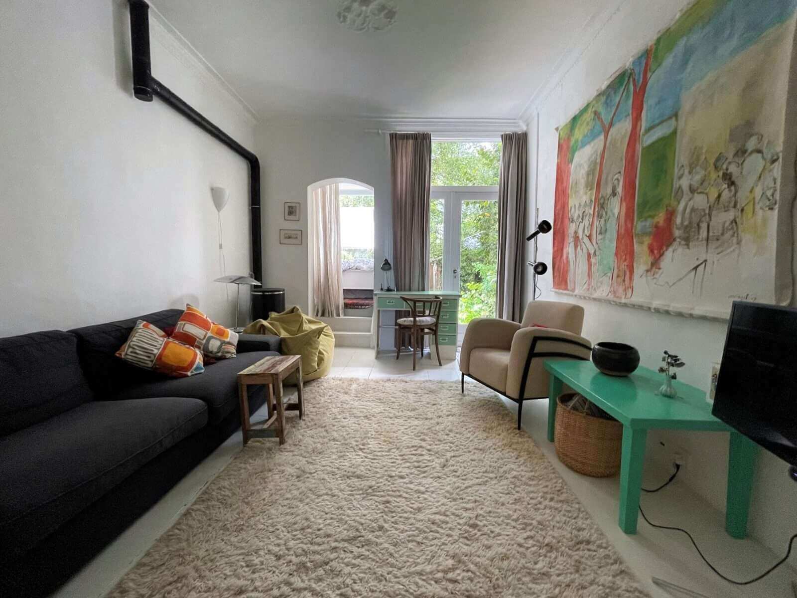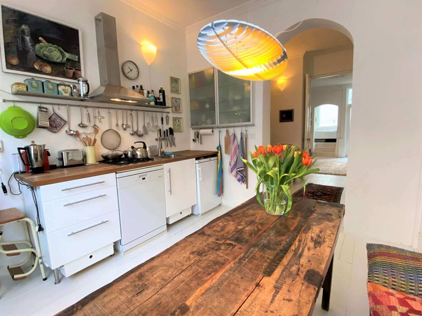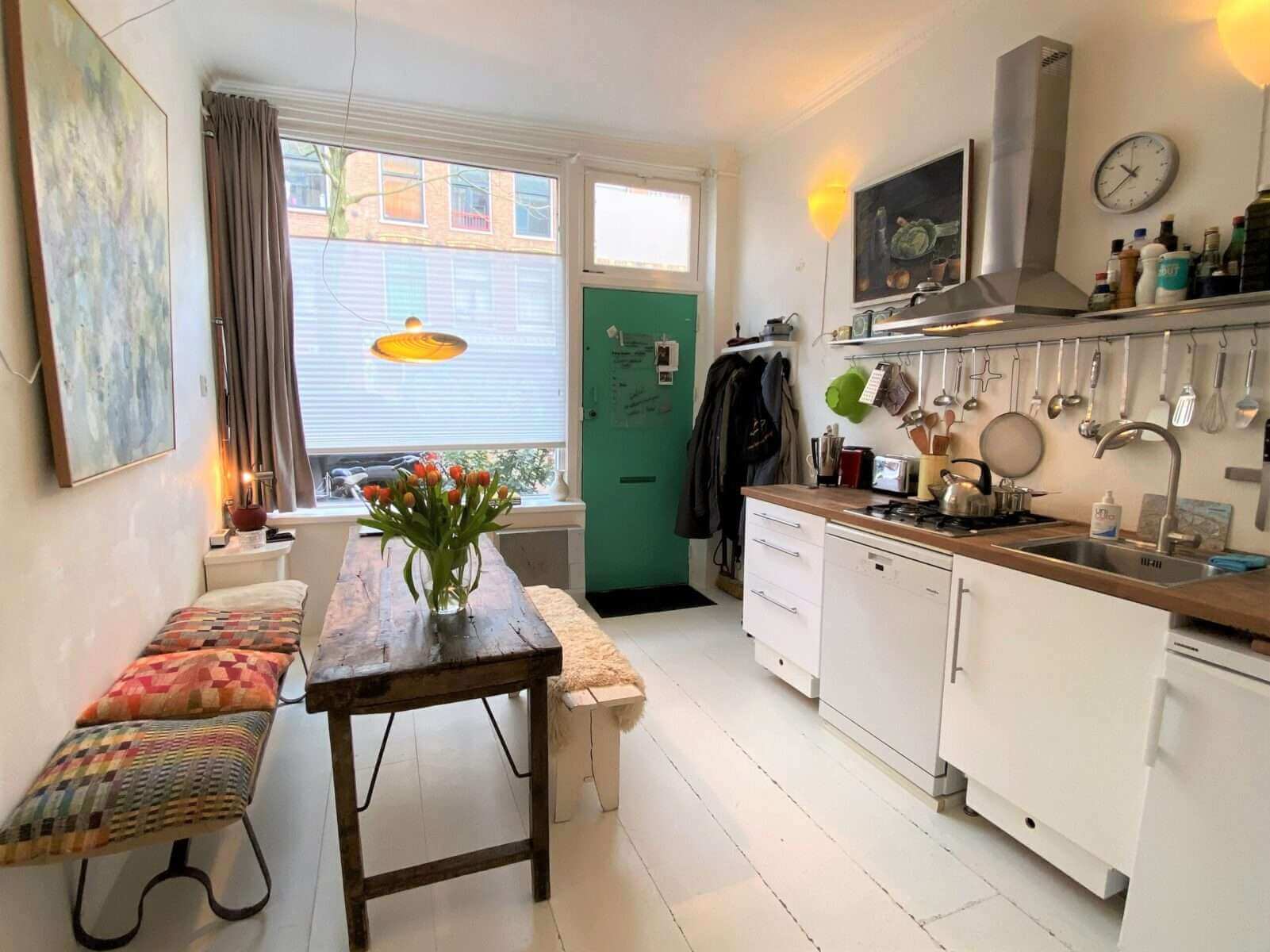 De gemeubileerde woning bevindt zich op een fantastische locatie midden in de bruisende wijk De Pijp, doch in een rustige straat.