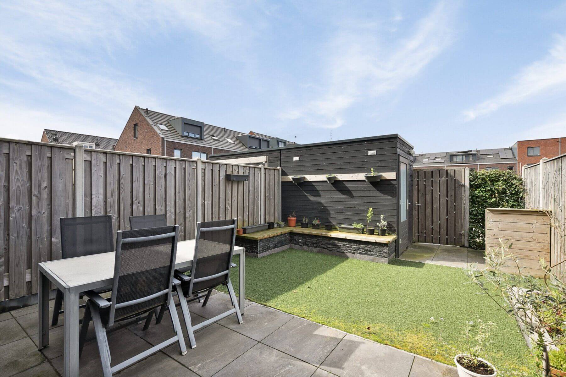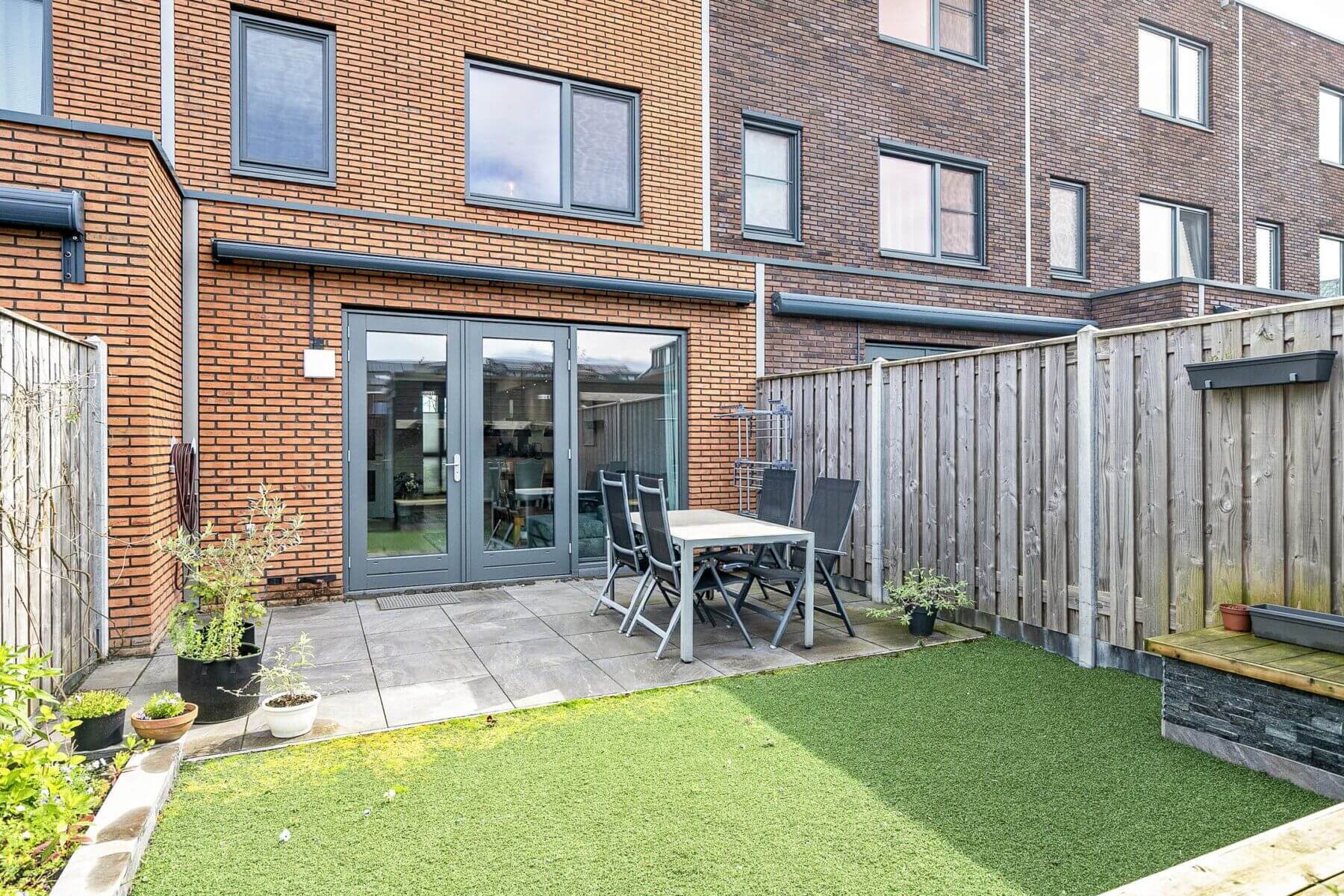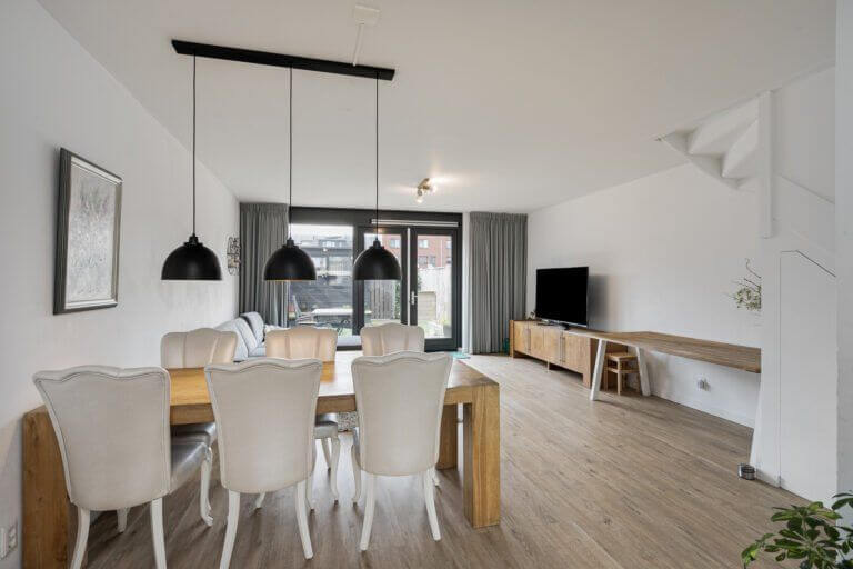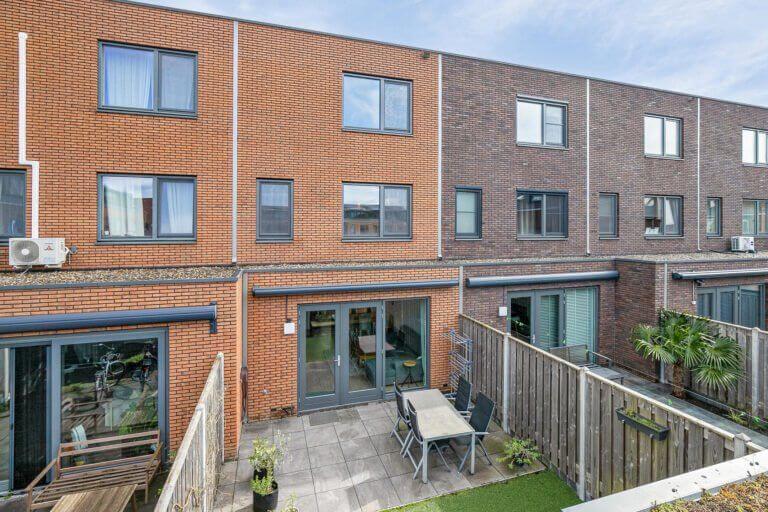 Zeer ruime en volledig gemeubileerde en energiezuinige tussenwoning met 5 slaapkamers met zonnige achtertuin en berging.