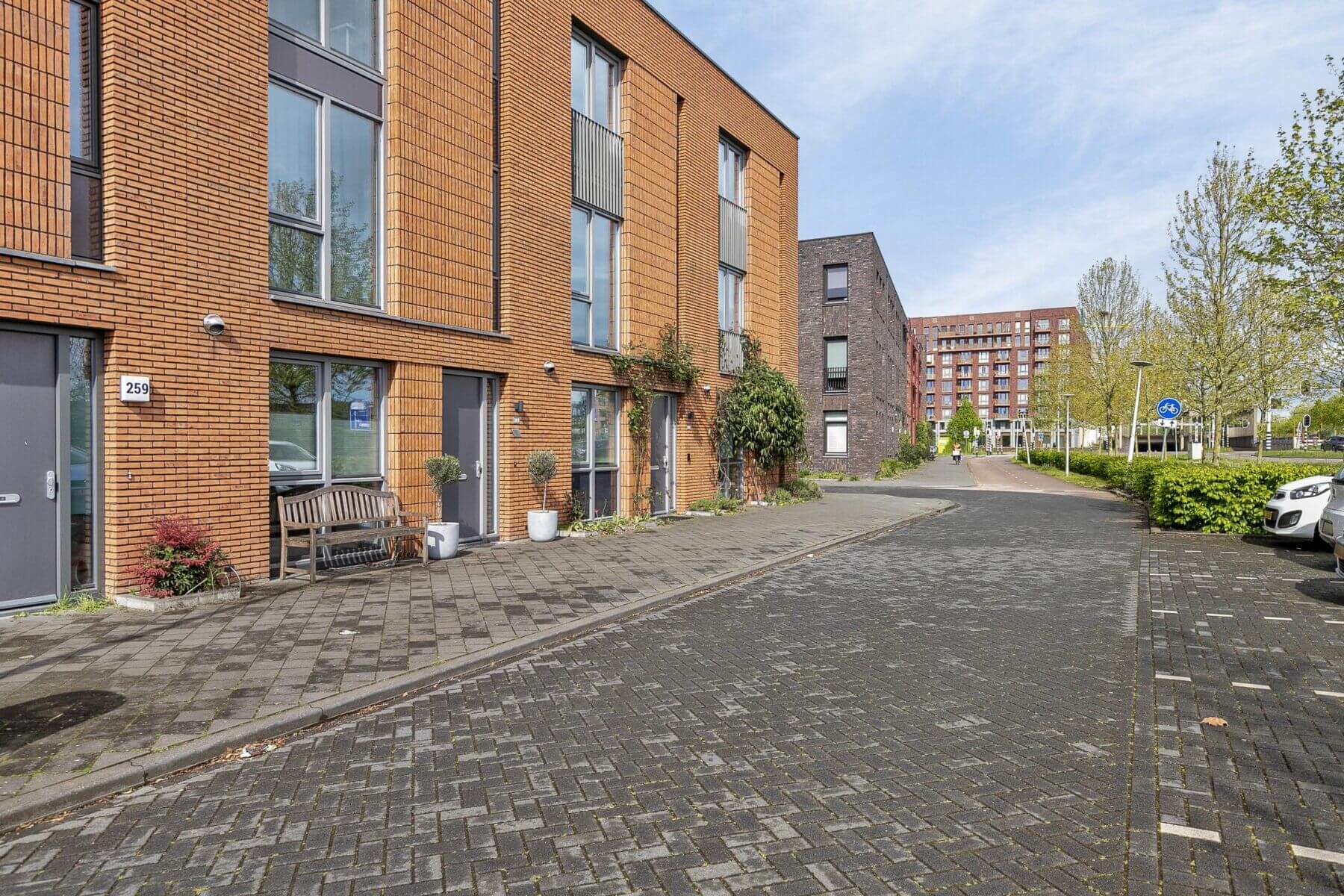Gelegen in Hoge Weide, nabij het Nieuwe Leidsche Rijn Centrum, Park de Hoge Weide en het Maxima park. Met de auto ben je zo op de A2, A12, A27 en A28. Het treinstation Leidsche Rijn ligt op 5 minuten fietsafstand en in de buurt zijn busverbindingen naar het centrum van Utrecht met al haar stedelijke voorzieningen en gezellige restaurantjes. Voor de fietsers zijn er vele fiets verbindingen en via een speciale fietsbrug rechtstreeks naar het centrum van Utrecht.