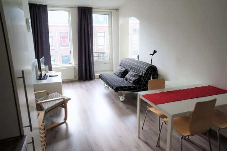Twee kamer (1 slaapkamer) woning met een breed balkon.aan de rustig gelegen achterzijde.
