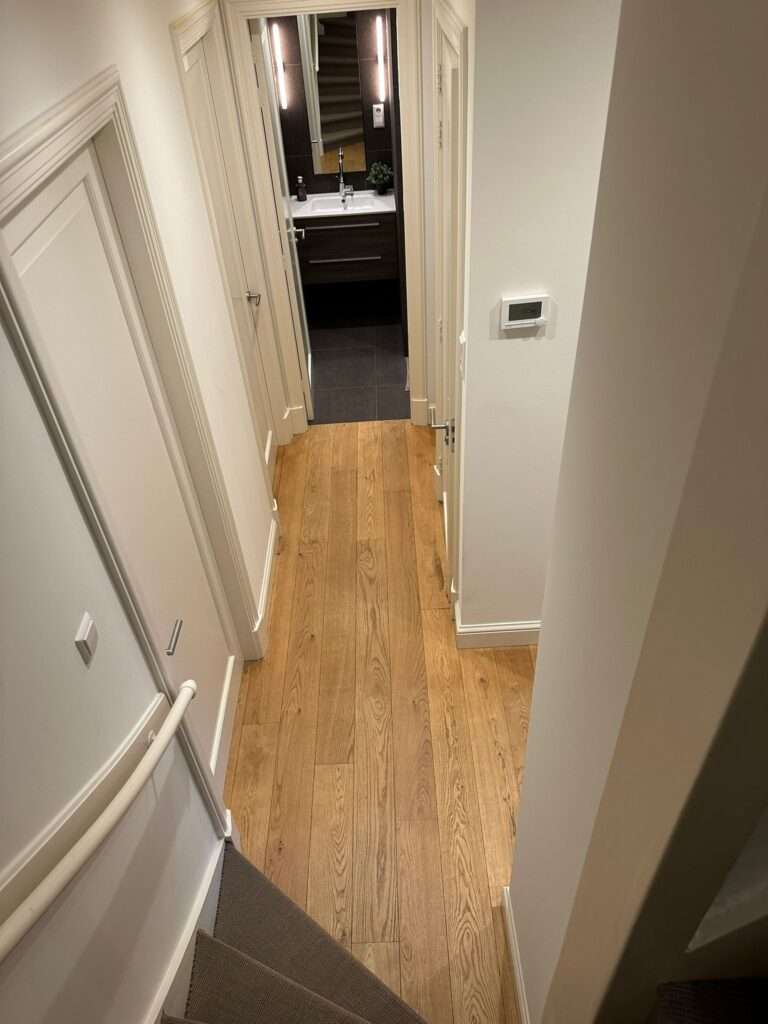Overloop uitkomend op een fraaie masterbedroom met inbouwkasten en deur naar het zonnige balkon, badkamer en suite met luxe ligbad en dubbele wastafel met ombouw en spiegel. De badkamer biedt eveneens toegang tot het zonnige balkon. Op deze verdieping biedt de overloop tevens toegang tot een separate wasruimte met wasmachine en droger opstelling.