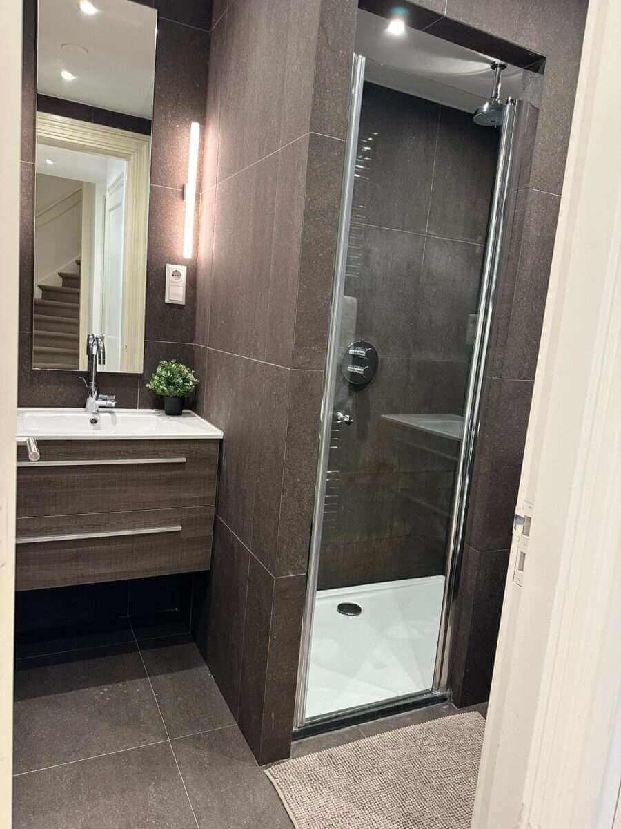 Vanuit de hal heeft u tevens toegang tot een aan de voorzijde gelegen slaapkamer met inbouwkasten en een badkamer voorzien van twee wastafels met ombouw en een ruime inloopdouche met stortdouche. Tevens biedt de hal toegang tot een aan de voorzijde gelegen tweede slaapkamer met inbouwkasten en bereikt u vanuit de hal via de eigen binnentrap de 3e verdieping.
