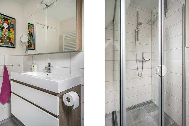 Via de overloop met daglicht komt u in de grote slaapkamer, die toegang heeft tot het balkon. De ruime badkamer is in een lichte kleurstelling en heeft een inloopdouche, een wastafelmeubel en toilet.