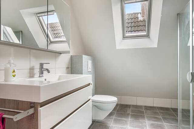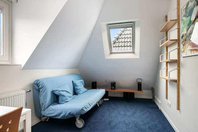 De tweede slaapkamer bevindt zich aan de voorzijde van de woning en heeft twee dakramen.