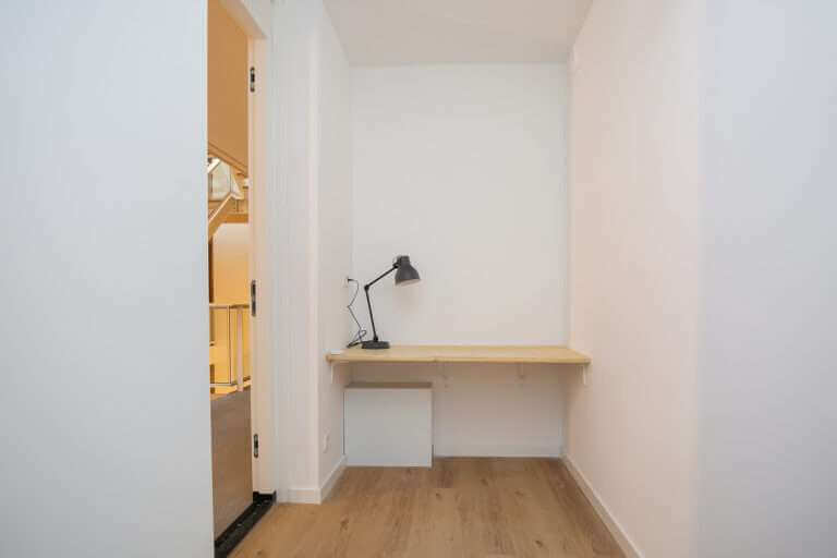 Vanuit de hal heeft u ook toegang tot een inpandige ruimte die voorzien is van de wasmachineaansluitingen en de warmtepomp installatie. Er is ook nog een ruime inpandige extra kamer aanwezig die bereikbaar is vanuit de galerij. Deze is ingericht als extra thuiswerkplek en voorzien van een ‘floating desk’.
