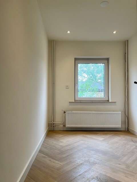De overloop geeft toegang tot drie slaapkamers en de vernieuwde badkamer alsmede de trapopgang naar de 2e verdieping. De ouderslaapkamer ligt aan de achterzijde en heeft openslaande deuren naar een mooi balkon. De twee andere slaapkamers liggen aan de voorzijde van de woning.