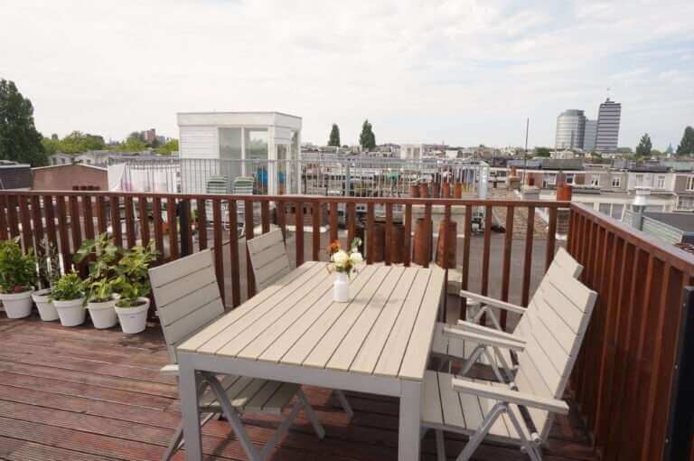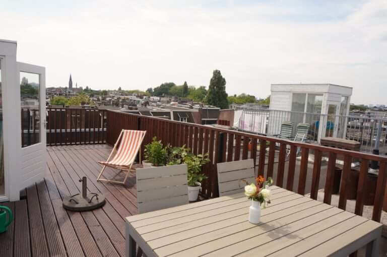 The fifth floor contains a large roof terrace with 360 degrees view of Amsterdam, ideal for a barbecue or glass of wine in spring and summer