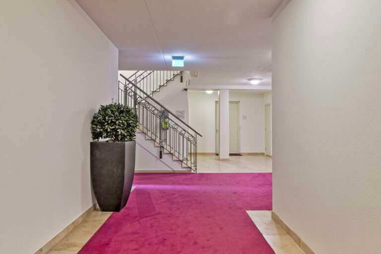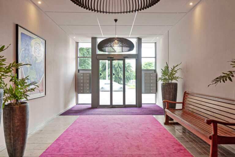 Fraaie entree in natuursteen uitgevoerd, met liften, direct bereikbaar vanuit de parkeergarage.