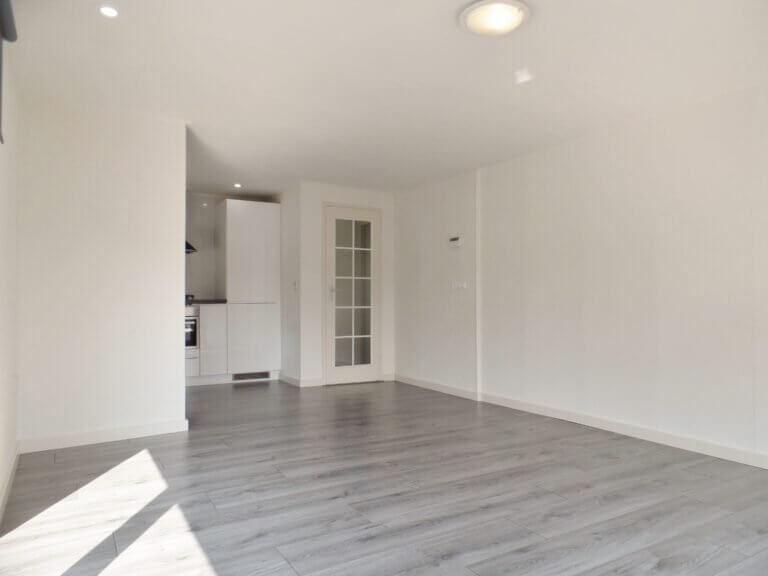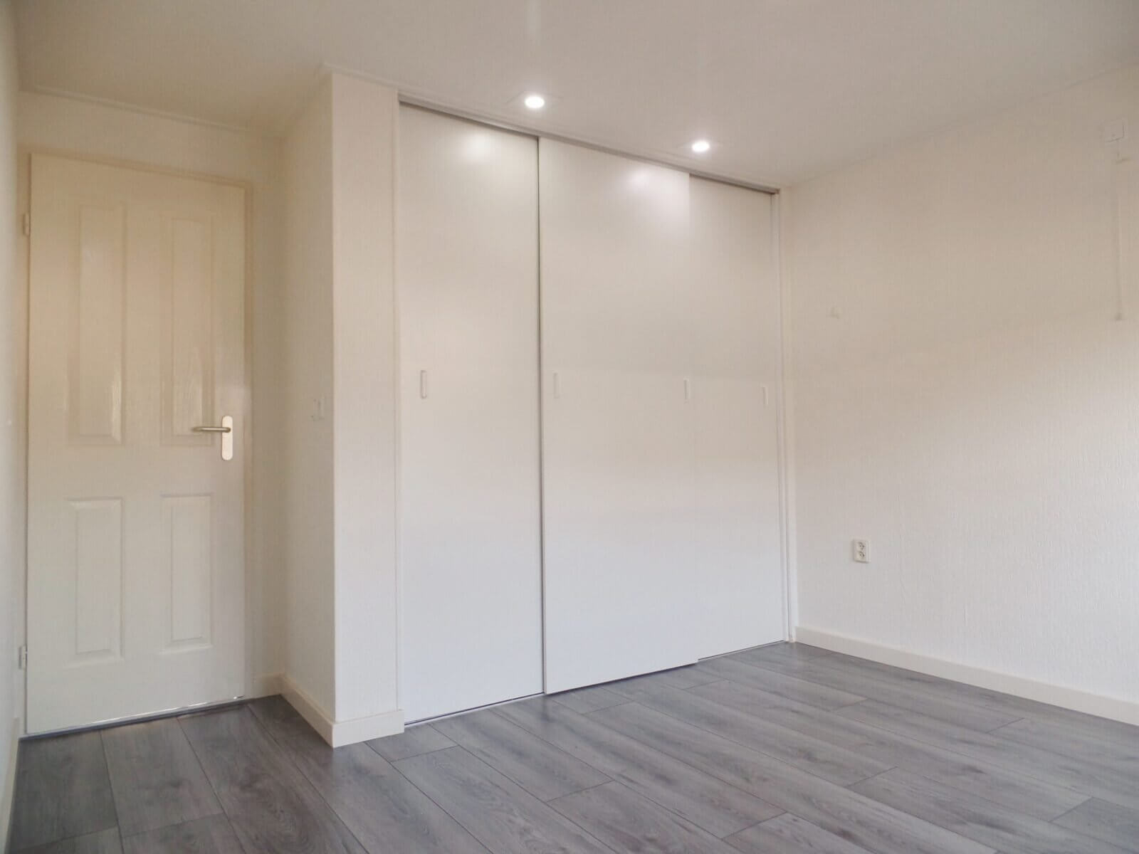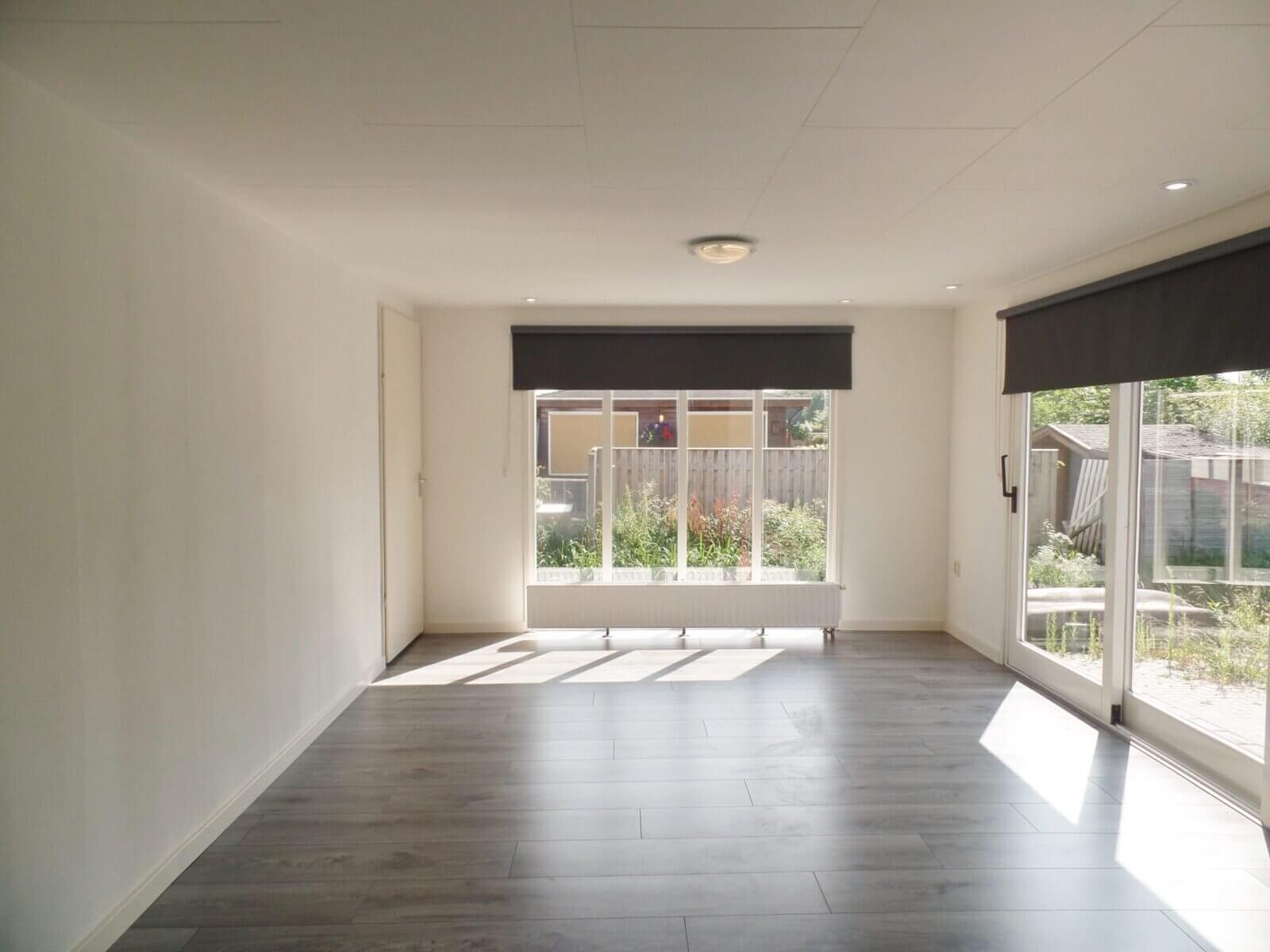 Entree, hal met toegang tot separaat toilet, kast met combiketel, badkamer, voorzien van ligbad, inloopdouche, designradiator en vaste wastafel met ombouw en handdoekenkast, twee slaapkamers, woonkamer met open keuken. Vanuit de woonkamer bereikt u de derde slaapkamer. De woonkamer beschikt over een schuifpui naar een klein stenen bordes met aansluiten de volledig betegelde tuin. De open keuken is voorzien van diverse inbouwapparatuur zoals een koelvries combinatie, vierpits gasfornuis, combi oven magnetron, afzuigkap en opstelling met aansluiting voor een wasdroogmachine.