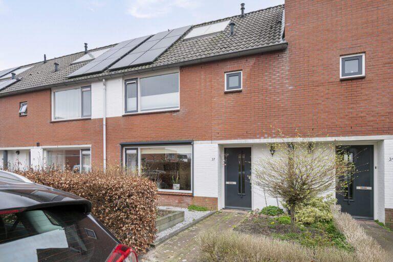 Hier treft u deze energiezuinige tussenwoning, voorzien van zonnepanelen, 3 slaapkamers, nieuwe badkamer en een heerlijke zonnige achtertuin met achterom.