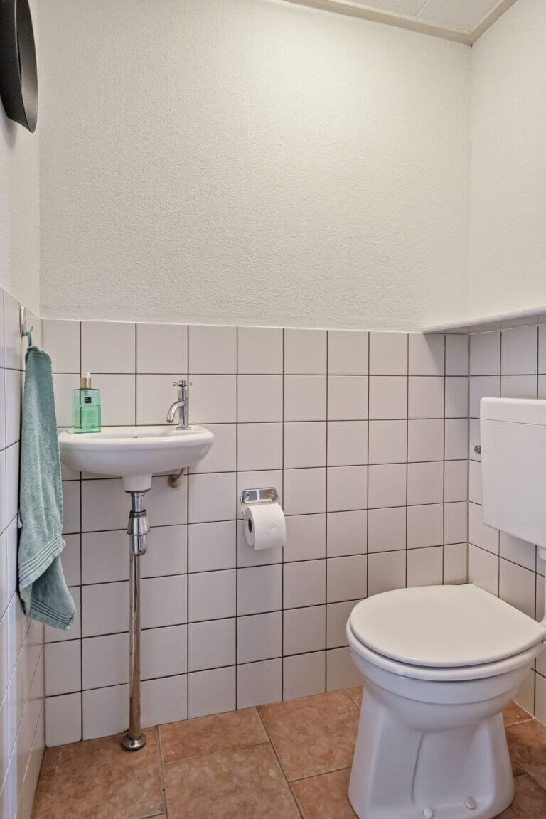 Voortuin, entree, hal, aparte toilet, vaste trap naar de 1e verdieping.