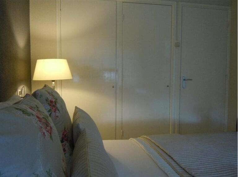 De ruime slaapkamer met inbouwkast biedt voldoende ruimte en heeft een openslaande deur naar het balkon.