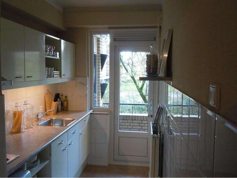 De lichte keuken is voorzien van een modern keukenblok met veel bergruimte. Via de keuken heeft u ook toegang tot het balkon. De wasmachineaansluiting zit in de keuken.