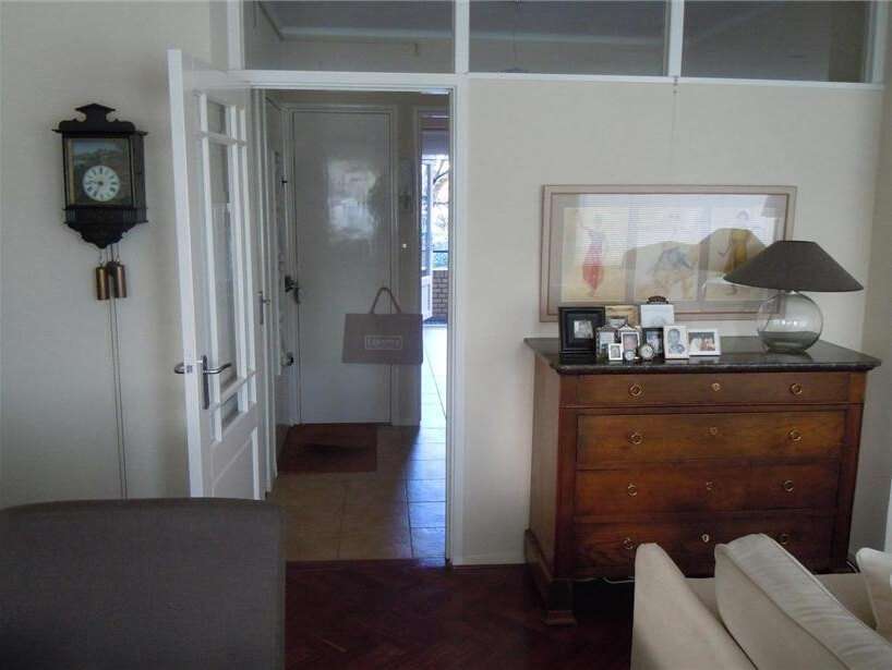De lichte woonkamer met een klein Frans balkon heeft een prachtige visgraat parket vloer en openhaard (gas) en ademt hierdoor veel sfeer uit.