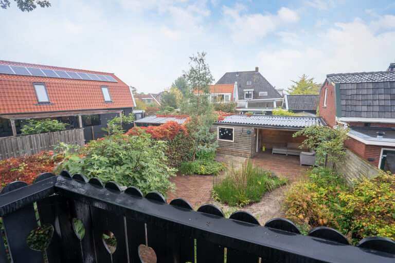 Vanaf de keuken en langs de woning loopt u de prachtige achtertuin in.