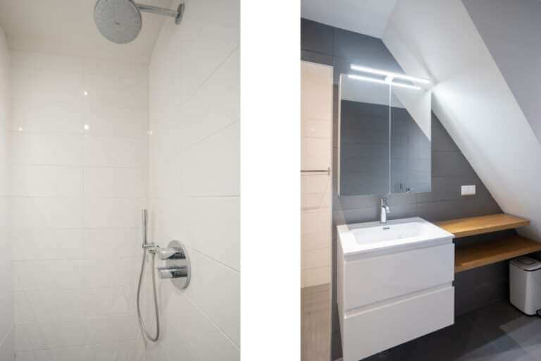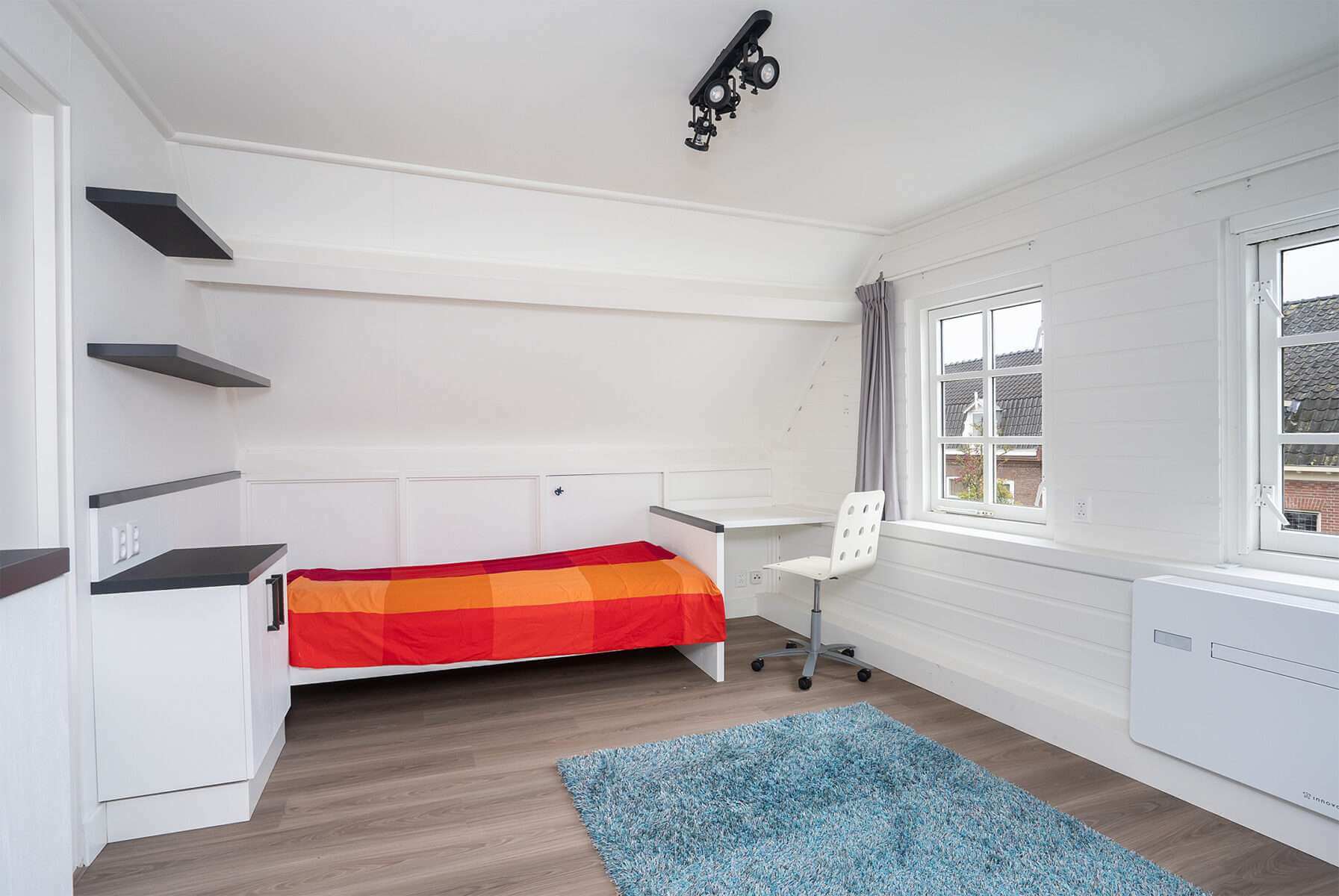 De overloop heeft meerdere inbouw kledingkasten en bergingsmogelijkheden. Aan de voorzijde van deze verdieping vindt u de tweede en derde slaapkamer met 2e badkamer voorzien van inloopdouche, wastafelmeubel en toilet.