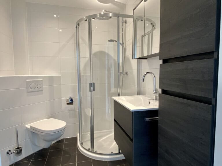 – Badkamer voorzien van badkamermeubel, douche, toilet en wasmachineaansluiting.