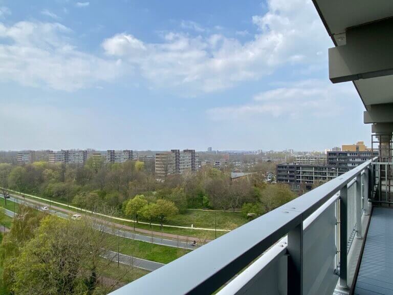 Te huur in Haarlem: Recent gerenoveerd, gestoffeerd, ruim en licht appartement met 1 slaapkamer, gelegen op de 9e etage, met zonnig balkon op het westen met vrij uitzicht tot aan de kust!
