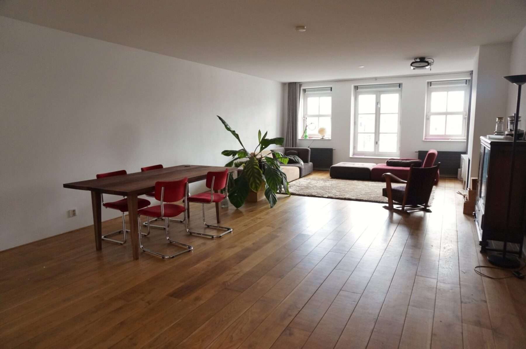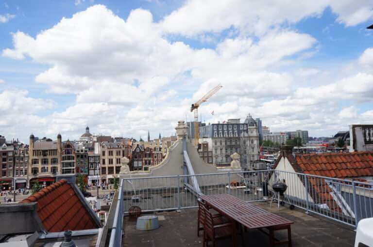 Aan het begin van de Warmoesstraat is dit ruime appartement (125m2) gelegen met een prachtig uitzicht naar de stad vanuit de leefkamer en vanaf het dakterras.