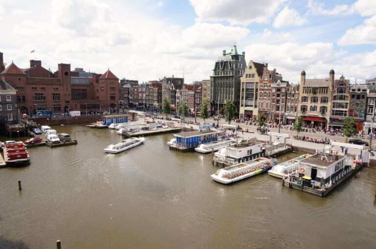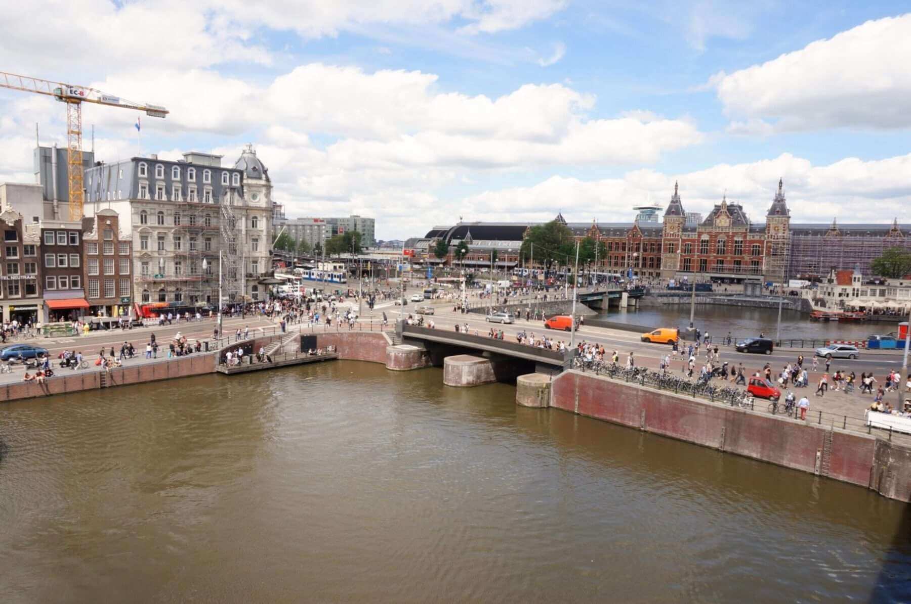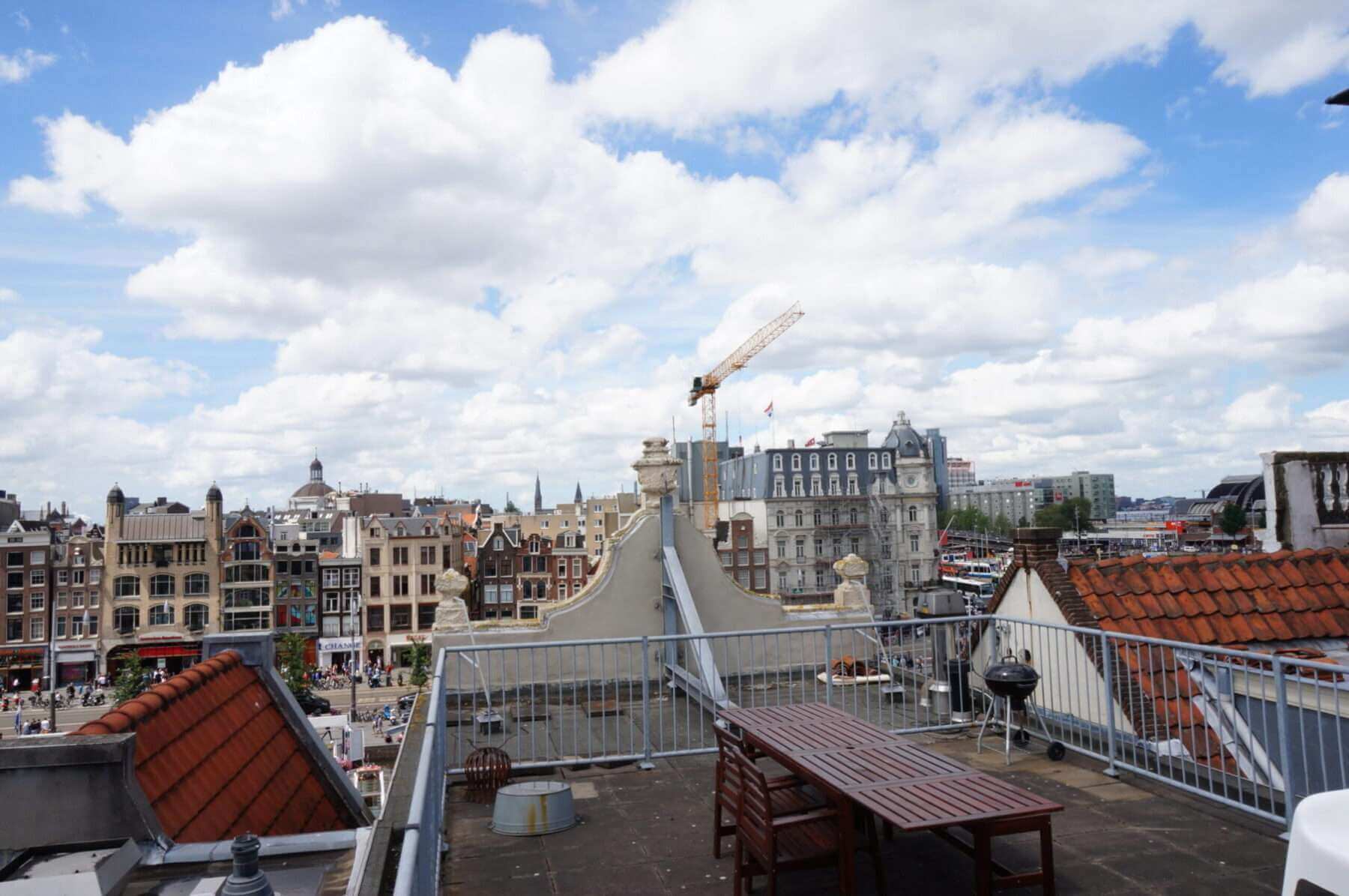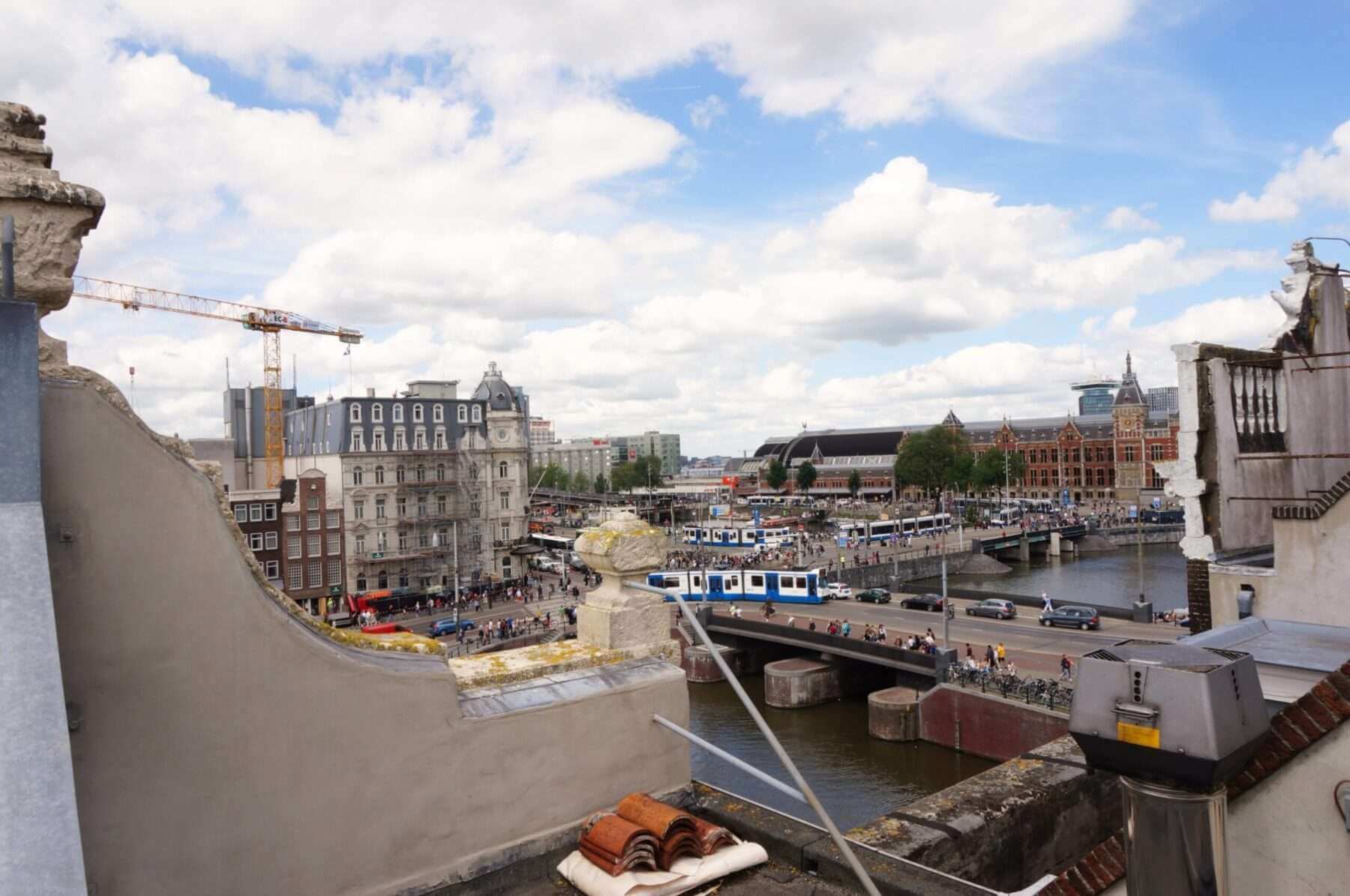 Vanuit de woonkamer is er een prachtig uitzicht naar het Damrak met een weids uitzicht over het water en naar de “entree” van de stad.
