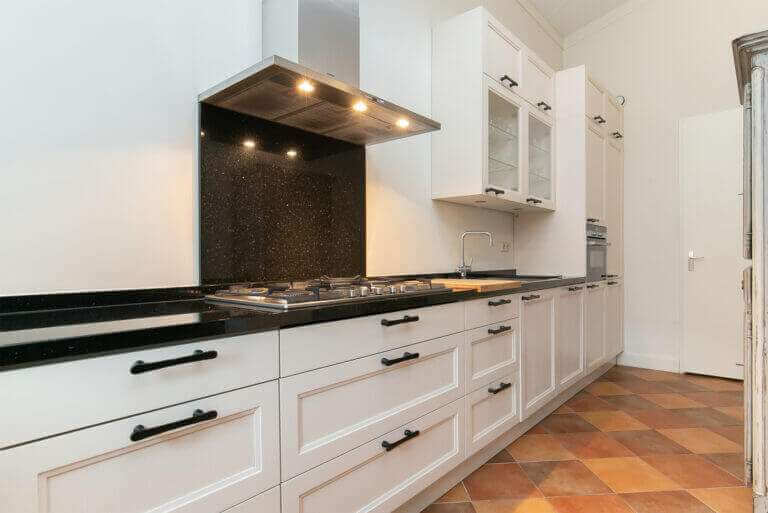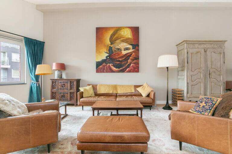 – Ruime zeer lichte woonkamer (65m2) met ruimtelijk gevoel door hoge plafonds;