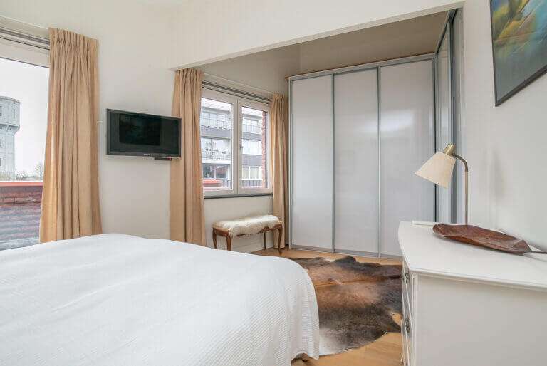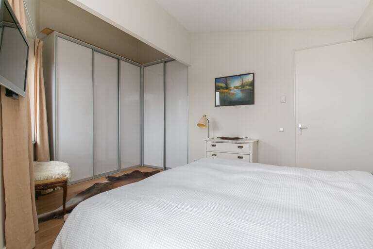 – Ruime lichte master bedroom met ingebouwde kastenwand ;