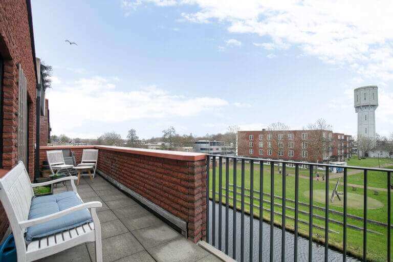 Nabij Haarlem: Prachtig, centraal gelegen volledig luxe gemeubileerd penthouse met 2 slaapkamers en ruim balkon met uitzicht over water. 130 m2 woonoppervlakte.