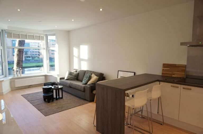 Het appartement, dat in een rustig straatje achter het Hoofddorpplein is gelegen, heeft een ideale ligging.