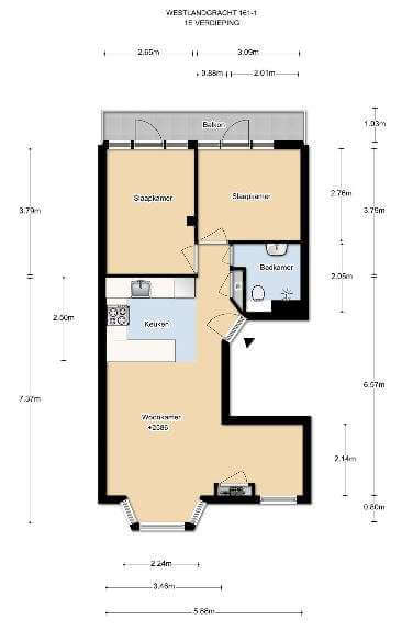 Verder is de woonkeuken voorzien van inbouwapparatuur en heeft de woning beschikking over een balkon op het Oosten over de gehele breedte van de woning.