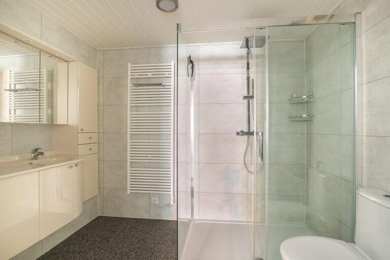 Via de trap bereikt u de overloop van 1e verdieping. De overloop biedt toegang tot de prachtige moderne en luxe uitgevoerde badkamer welke beschikt over een inloopdouche, toilet en wastafelmeubel. Bovendien vindt u op deze verdieping de mooie slaapkamer welke is voorzien van een grote garderobekast.
