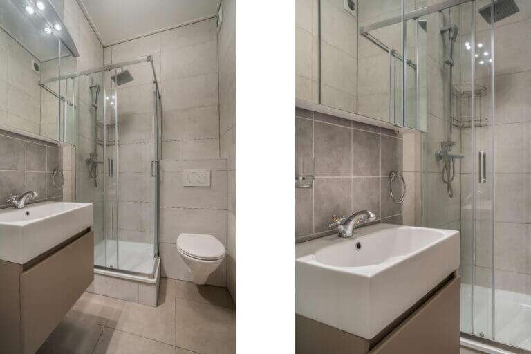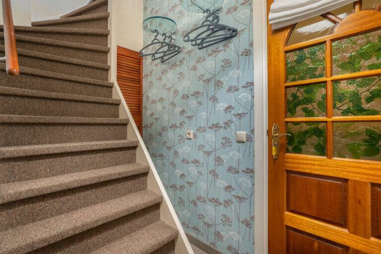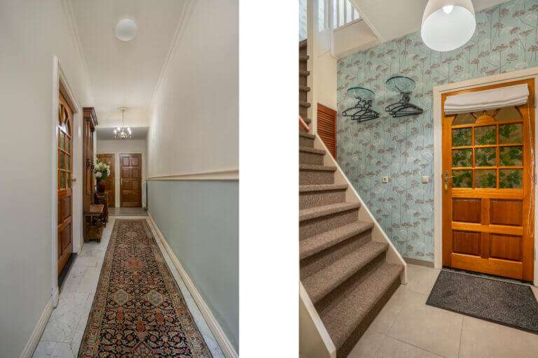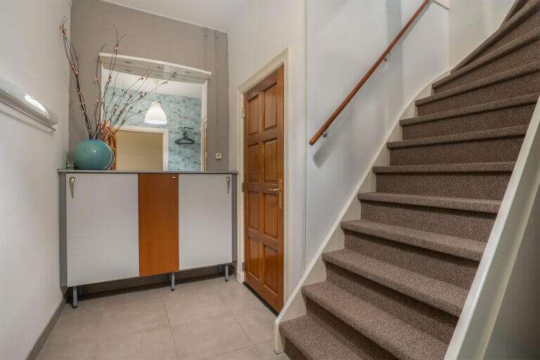 Hoofdentree met lange monumentale gang naar de entree van het appartement. De entree biedt toegang tot een hal met trap naar de eerste verdieping en deur naar de badkamer. De prachtige moderne en luxe uitgevoerde badkamer beschikt over een douchecabine, toilet en wastafelmeubel. Op de begane grond is tevens een gemeenschappelijke wasruimte aanwezig waar u gebruik kunt maken van de gemeenschappelijke wasmachine en droger.
