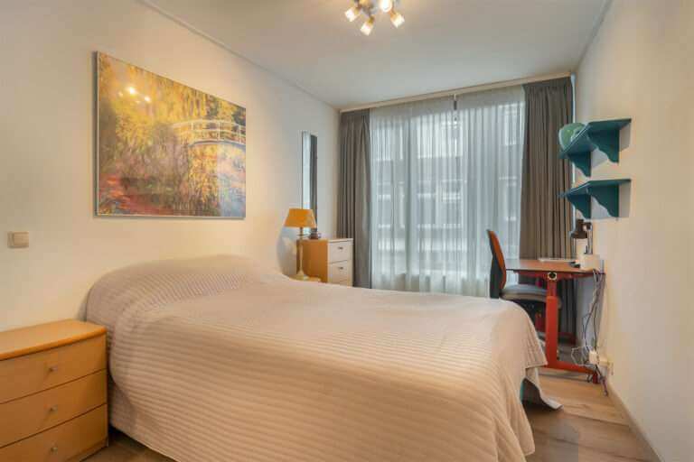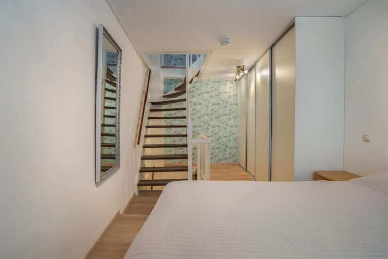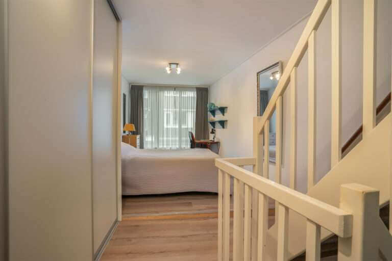 Vi a de trap bereikt u de slaapverdieping van het appartement met mooie slaapkamer welke is voorzien van een grote garderobekast.
