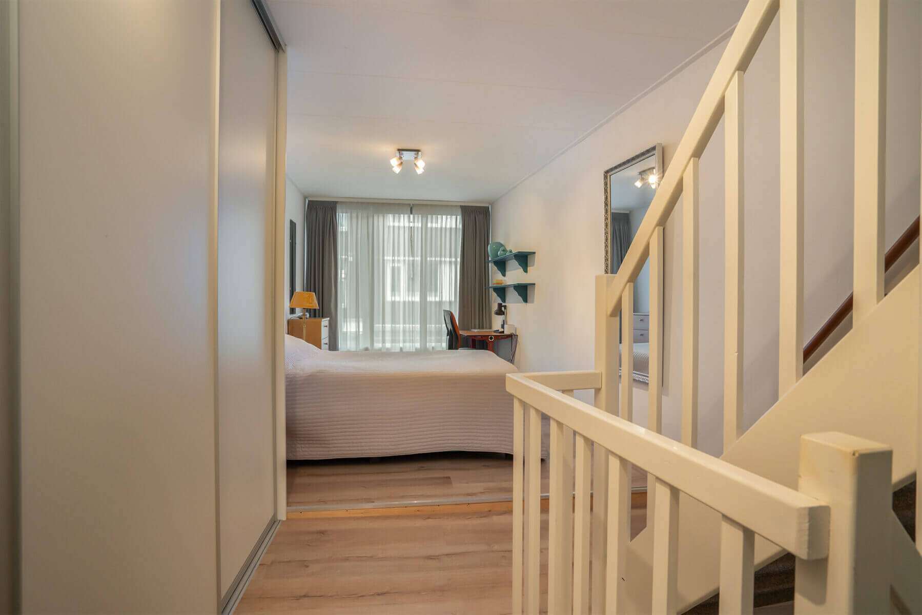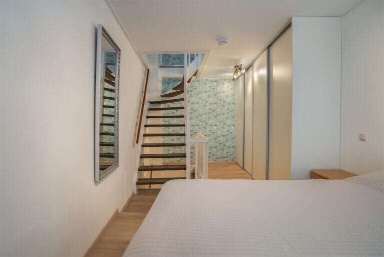 Vi a de trap bereikt u de slaapverdieping van het appartment met mooie slaapkamer welke is voorzien van een grote garderobekast.