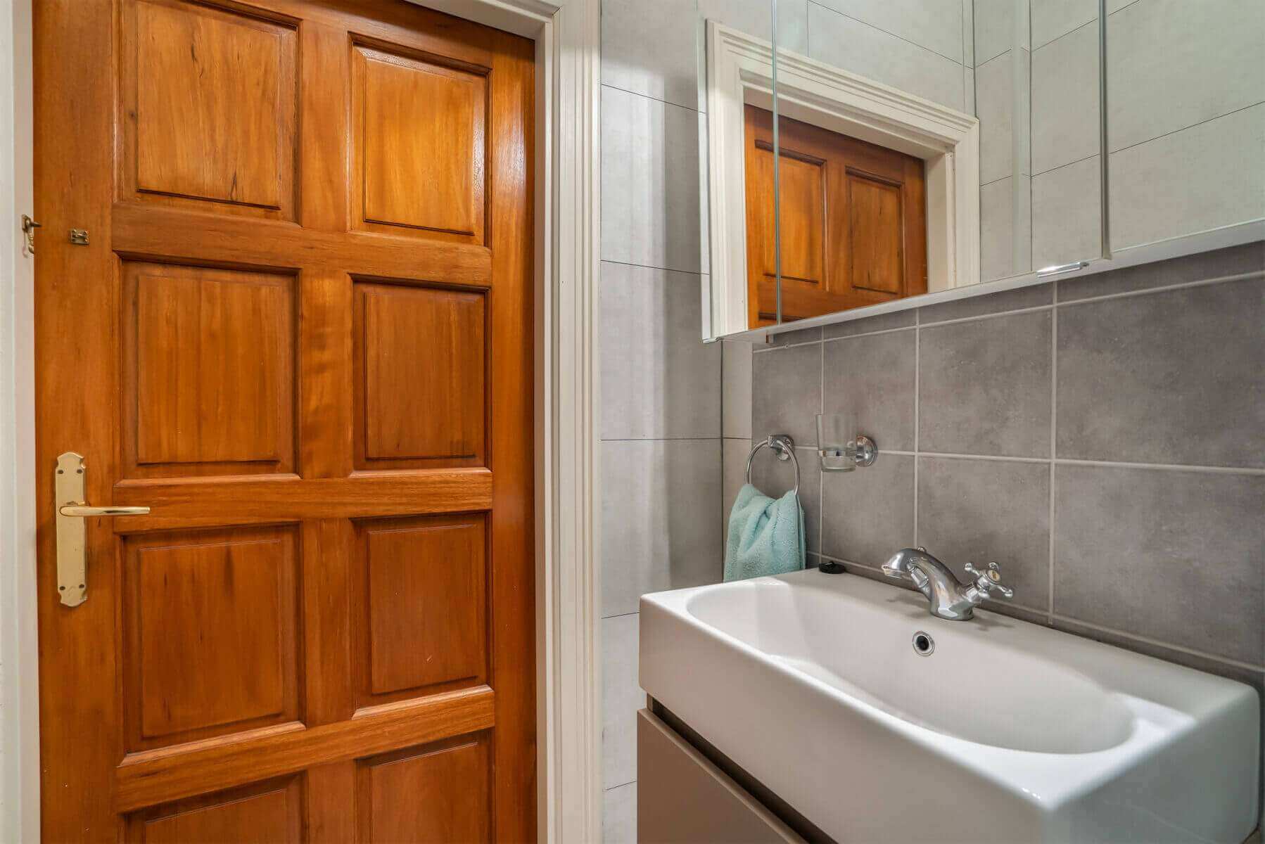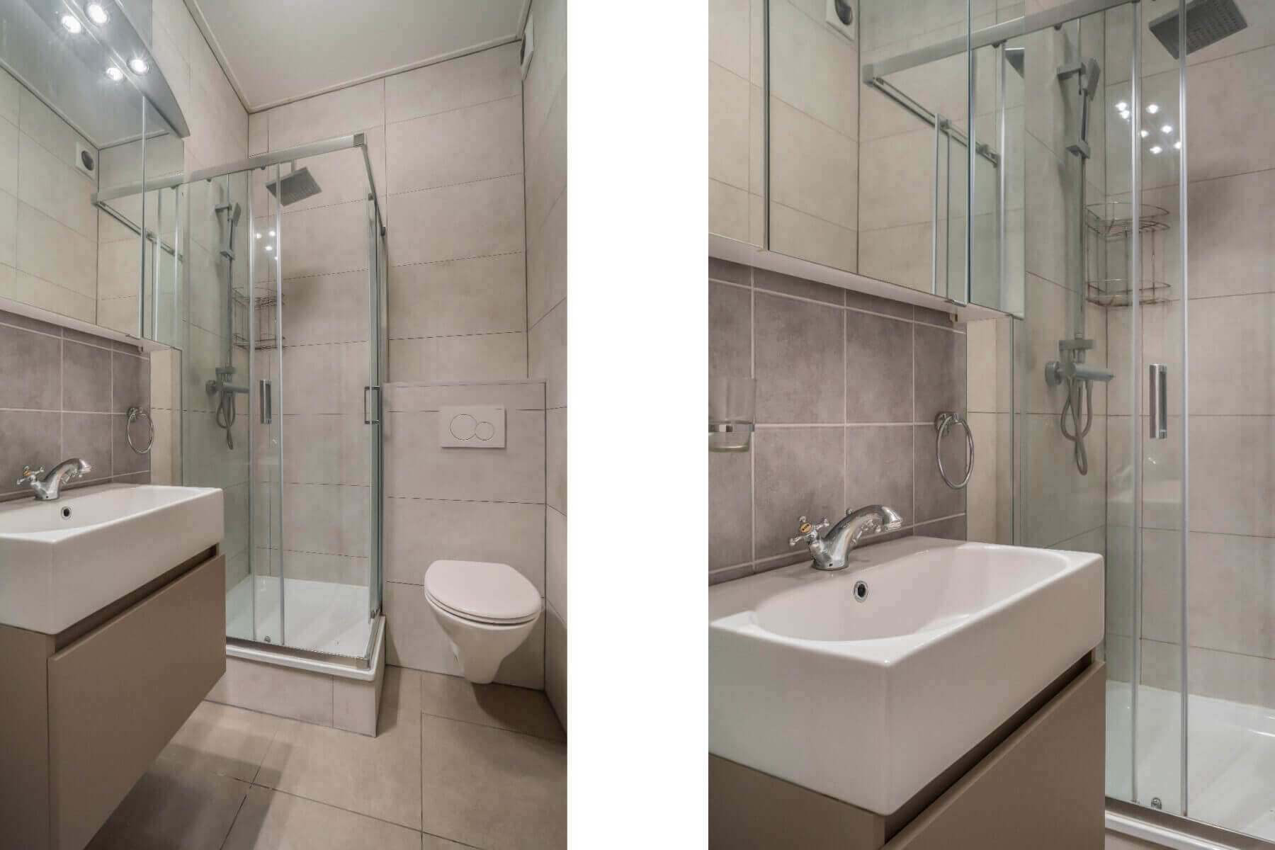 Hoofdentree met lange monumentale gang naar de entree van het appartement. De entree biedt toegang tot een hal met trap naar de eerste verdieping en deur naar de badkamer. De prachtige moderne en luxe uitgevoerde badkamer beschikt over een douchecabine, toilet en wastafelmeubel. Op de begane grond is tevens een gemeenschappelijke wasruimte aanwezig waar u gebruik kunt maken van de gemeenschappelijke wasmachine en droger.