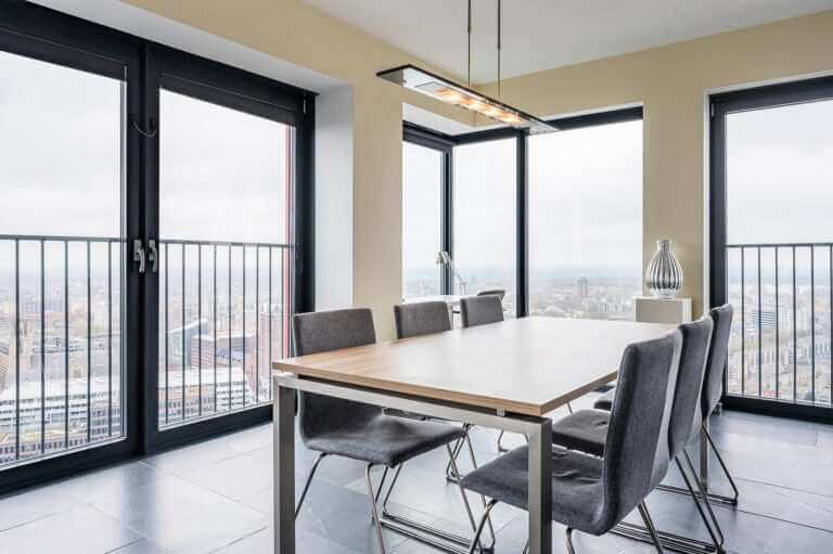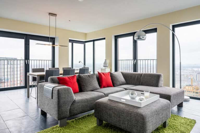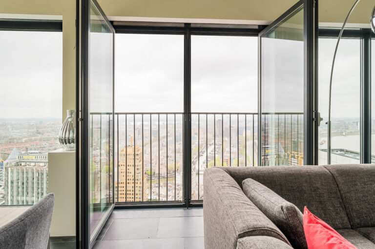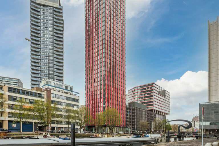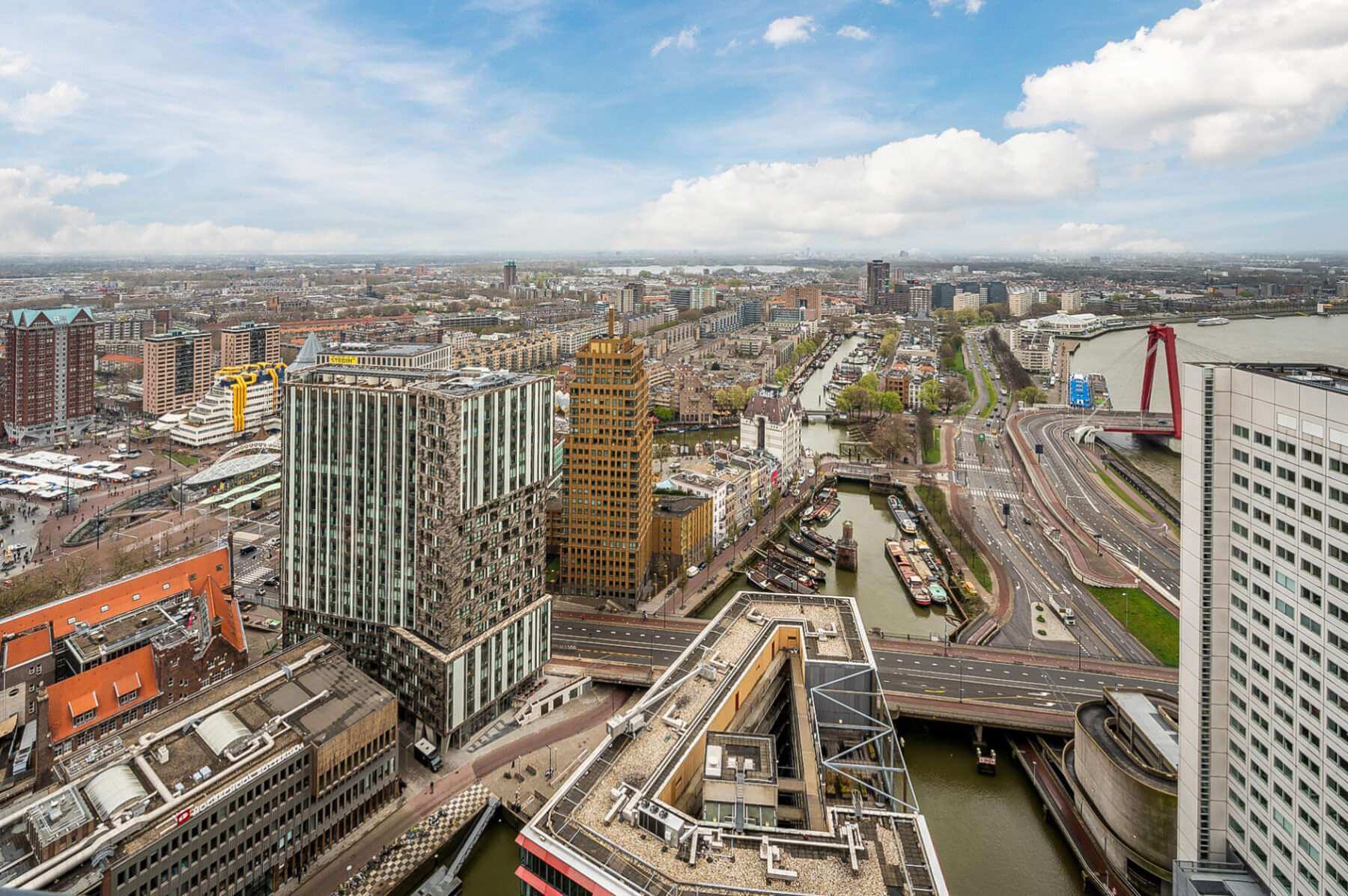 IDEAAL GELEGEN, VOLLEDIG gemeubileerd stads appartement in het prachtige gebouw genaamd Red Apple. Vanuit dit gebouw kunt u het treinstation Blaak, de Markthal, vele restaurants, winkels en supermarkten bereiken gewoon door te wandelen. Het appartement ligt op de 36e verdieping en biedt een prachtig panoramisch uitzicht over Rotterdam.