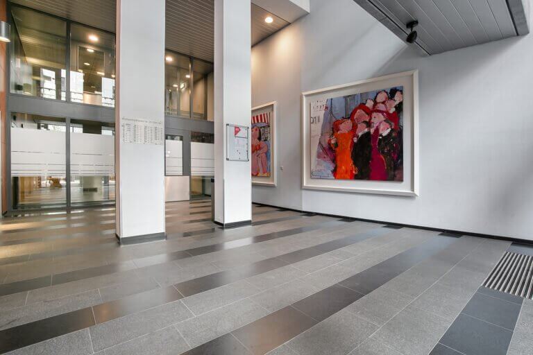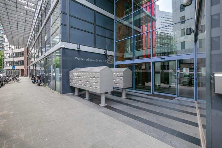 Representatieve entree met brievenbussen, bellentableau, liftinstallatie met 3 liften, trappenhuis (met videobewaking).